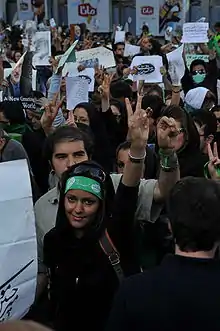 - في إيران، علامة الـ(V) وخصوصا عندما تطبع باللون الأخضر، تعني الحركة الخضراء في إيران