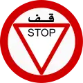 علامة قف القديمة في بريطانيا إلى عام 1975، ما زالت تستخدم في جزر الباهاماس).