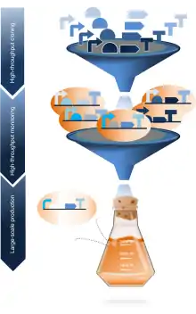 يمكن إنتاج الإنزيمات من خلال التخمير إما عن طريق التخمير المغمور و / أو التخمير في الحالة الصلبة.[5] يُشار إلى التخمير المغمور عندما تكون الكائنات الحية الدقيقة على اتصال مع الوسائط. في هذه العملية يكون الاتصال بالأكسجين ضروريًا. يمكن للمفاعلات الحيوية / المخمرات المستخدمة للقيام بهذا الإنتاج الضخم للمنتج تخزين ما يصل إلى 500 متر مكعب في الحجم. التخمر في الحالة الصلبة أقل شيوعًا من التخمير المغمور، ولكن له فوائد عديدة. هناك حاجة أقل لأن تكون البيئة معقمة نظرًا لوجود كمية أقل من المياه، كما أن هناك ثباتًا وتركيزًا أعلى للمنتج النهائي. يتم تصنيع الأنسولين من خلال عملية التخمير واستخدام الإشريكية القولونية المؤتلفة أو الخميرة من أجل صنع الأنسولين البشري الذي يسمى أيضًا هومولين .