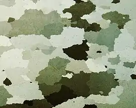 - تبين الصورة المجاورة تكون الحديد الصلب من حبيبات، تشكل كل منها بلورة أحادية تتبع النظام البلوري الخاص بالحديد، وتتوزع فيه البلورات الأحادية توزيعا عشوائيا بالنسبة للاتجاه.