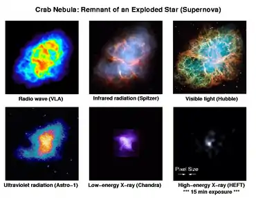 يعتمد علم الفلك الرصدي الحديث على قياسات لعدة أشعة منها ما يرى بالعين (الضوء المرئي) ومنها ملا تراه العين:
