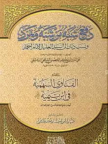 - كتاب: رسالة في الرد على ابن تيمية في مسألة حوادث لا أول لها، حققها وشرح عباراتها: سعيد عبد اللطيف فودة، طبعة: دار الذخائر (بيروت)، الطبعة الأولى: 1435هـ – 2014م، ص: 100-101.