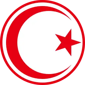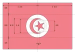 | التصميم | العلم التونسي أحمر يتوسّطه قرص أبيض فيه نجم خماسي أحمر يحيط به هلال أحمر |
