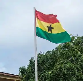 اعتمد علم غانا رسميا في أذار / مارس من سنة 1957 ألوان علم غانا هي الأحمر والأصفر والأخضر والأسود وهي بذلك تشبه الكثير من البلدان الأفريقية التي اعتمدت هذه الألوان بعد نيل استقلالها يرمز اللون الأحمر الموجود في العلم دماء التضحية من أجل الاستقلال ويرمز اللون الأصفر إلى الرواسب المعدنية ويمثل اللون الأخضر إلى الغابات الموجودة في غاناويرمز النجم الأسود الموجود في العلم إلى قارة أفريقيا حرة.