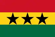 العلم الحكومي الغاني، الذي اعتمد في عام 1957، حتى عام 1962. مثل، عندما تم تشكيل الدولة في اتحاد الدول الأفريقية، كان علم الاتحاد على غرار علم بوليفيا، ولكن مع اثنين من النجوم السوداء، التي تمثل الدول . في مايو 1959، تم إضافة نجمة ثالثة. تحديد مكان كيف تم ترتيب النجوم، وكان من الممكن أن كانوا مرتبة في المثلث، وعلى الرغم من أن تشكيل ثلاثة في واحد في خط (كما هو موضح هنا) هو أكثر احتمالا.[5]