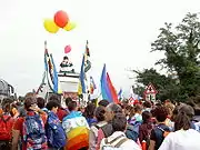 علم الإل جي بي تي مرفوع في يوم شارع كريستوفر في برلين عام 1997