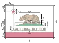 | The bear flag is hereby selected and adopted as the state flag of California.... The said bear flag shall consist of a flag of a length equal to one and one-half the width thereof; the upper five-sixths of the width thereof to be a white field, and the lower sixth of the width thereof to be a red stripe; there shall appear in the white field in the upper left-hand corner a single red star, and at the bottom of the white field the words 'California Republic,' and in the center of the white field a California grizzly bear upon a grass plat, in the position of walking toward the left of the said field; said bear shall be dark brown in color and in length, equal to one-third of the length of said flag. |
