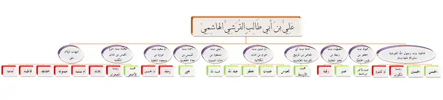 عليّ بن أبي طالب رأس بني هاشم فرع الابن الأصغر من قريش ولد: 13 رجب 23 ق هـ 17 مارس 599م توفي: 21 رمضان 40هـ 27 يناير 661م | ||