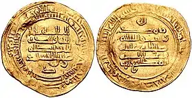 ![]() دينار يعود لعهد علي بن محمد بن طغج الإخشيد | |||||||