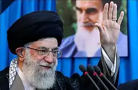 السيد علي خامنئي (بالفارسية: سيد على خامنهاى) (17 يوليو 1939) سياسي إيراني. كان رئيسًا لإيران منذ 13 أكتوبر 1981 حتى 3 أغسطس 1989 ويشغل منصب المرشد الأعلى لإيران منذ 4 يونيو 1989 بعد روح الله الخميني. أعلنت جمعية مدرسي حوزة قم العلمية مرجعيته للشيعة الاثنا عشرية الأصولية في 1994 وهي موضع خلاف.[2]