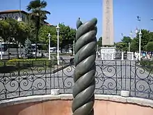 يُعد عمود الثعبان أحد أقدم المعالم الأثرية التي ما تزال ناجية من العصور القديمة، وهو نصب بُني في الأصل لتكريم أبولو بمناسبة انتصاره على الفرس في بلاتيا عام 479 قبل الميلاد. نقل قسطنطين العظيم العمود عندما أصبحت القسطنطينية العاصمة الجديدة، ووقف في ميدان سباق الخيل في القسطنطينية منذ ذلك الحين. وفقًا للأسطورة، ألحق عضو في السفارة البولندية عام 1700، الضرر بالجزء العلوي من العمود بشكل كبير، مما أدى إلى قطع رؤوس الثعبان، على الرغم من ذكر أن واحدًا على الأقل من الرؤوس قد أُصيب بأضرار بالغة قبل قرنين من الزمن.[1] تنص الرواية المتعارف عليها أن محمد الثاني قد حطمها عند دخول المدينة منتصرًا كفاتح لها. يُعرض الفك العلوي لأحد رؤوس الثعابين في المتحف الأثري في إسطنبول.