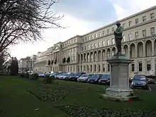 شهدت الفترة زيادة كبيرة في المباني العامة، على المستويين القومي والمحلي.[6] بُنيت ثلاثة جسور في لندن فوق نهر التايمز بين عامي 1813 و1819 هي جسر فوكسهول وجسر ووترلو وجسر ساوثوارك، وجرى تمويلها كلها من القطاع الخاص عن طريق رسوم المرور.[7] بدأ إدراج المتاجر بشكل منهجي في التطورات المخططة حديثًا، وبُنيت الأروقة المعمدة المغطاة للمحلات التجارية وكان أقدمها رواق برلنغتون المعمد في لندن (1815- 1819). [8]