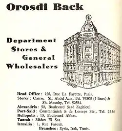 - تأسست الشركة عام 1856 على يد عائلة أودلف أوروزدي في عهد الخديوى سعيد باشا، بدأت أول فروعها في شارع عبد العزيز بالقاهرة لتلبية احتياجات العملاء من المصريين والأجانب. وصممه المعماري راؤول براندن علي طراز الروكوكو عام (1905 - 1906) وهو مكون من ستة طوابق.[1]