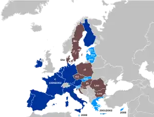 خريطة العملات المستخدمة داخل الاتحاد الأوروبي وتواريخ اعتماد اليورو