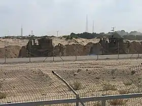 ![]() جرافتي كاتربيلر دي-9 تابعة لجيش الدفاع الإسرائيلي خلال العملية. | |||||||||
