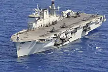 وكان للبحرية الملكية أيضًا فرقاطة من نوع 22 (إتش إم إس كمبرلاند) وفرقاطة من نوع 23 (إتش إم إس ويستمنستر) شاركتا في الحصار البحري. (الفرقاطة هو اسم يطلق على نوع من السفن الحربية السريعة التي تكون أصغر حجمًا من المدمرات وأكبر من الفرقيطة أو الكورفيت).