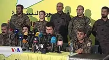 - "البنتاغون: مقاتلون أكراد ندعمهم غادروا للدفاع عن عفرين". الجزيرة.نت. 6 آذار (مارس) 2018. تمت أرشفته من الأصل في 8 آذار (مارس) 2018. اطلع عليه بتاريخ 8 آذار (مارس) 2018. نسخة محفوظة 31 يوليو 2018 على موقع واي باك مشين.