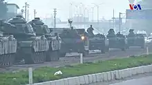 عملية غصن الزيتون (بالتركية: Zeytin Dalı Harekâtı) هو الاسم الرمزي الذي أُطلق على عملية عسكرية شنتها تركيا وفصائل الجيش السوري الحر المدعومة من قِبلها على مواقع قوات سوريا الديمقراطية المحيطة بمدينة عفرين السورية. تطالب الفدرالية الديمقراطية لشمال سوريا بعفرين والمنطقة المحيطة بها بوصفها إقليم عفرين. يذكر أن إقليم عفرين يشكل جيب معزول عن بقية مناطق الفدرالية الديمقراطية ويحيط به مناطق تسيطر عليها فصائل عملية درع الفرات والمعارضة السورية والحكومة السورية. وقالت الخارجية التركية أنها أبلغت السلطة السورية في دمشق عن تفاصيل عملية عفرين في بيان خطي،[51] في حين نفت وزارة الخارجية السورية هذا الأمر بعد بضعة أيام من انطلاق العملية العسكرية.[52]