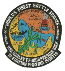 - Proceedings, U.S. Naval Institute 66 (May 1989) © 1989 United States Naval Institute The Surface View: Operation Praying Mantis By Captain J. B. Perkins III, U.S. Navy, accessed via http://www.strategypage.com/militaryforums/8-8434/page3.aspx, 17 July 2008 نسخة محفوظة 2016-03-05 على موقع واي باك مشين.