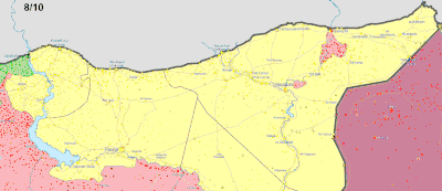 وقد بدأت القوات المسلحة السورية بالانتشار في بلدتي الطبقة وعين عيسى بريف الرقة،[138] وتل تمر بريف الحسكة، وما يقارب 6 كم من الحدود التركية السورية.[139] كما سيطرت على مقر اللواء 93 جنوب عين عيسى، وكذلك بلدة الجرنية شرق الفرات.[140][141] كما قام الجيش السوري بالسيطرة على سد الطبقة. يُقال أن العلم الوطني السوري رُفع للمرة الأولى منذ سنوات في عدة بلدات وقرى في محافظة الحسكة، مثل مدينة اليعربية.[142][143]
