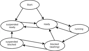 - عملية "مُنتظرة"، أي أن العملية تنتظر ظهور حادثة مثل اكتمال المُدخلات، أو وصول إشارة.