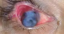 هو الاسم الذي يطلق على الانتفاخ الموضعي في المنطقة الحوفية، التي يحدها جذر القزحية. تنتج تلك الحالة بسبب توسع النسيج الندبي الضعيف الذي تشكل في الحوف، بعد الشفاء من إصابة ثاقبة أو قرحة قرنوية طرفية. قد يكون هناك زرق انسداد زاوية ثانوي مرتبط، مما قد يسبب تطور الانتفاخ إذا لم يعالج. يحدث عيب الرؤية عادة بسبب لابؤرية قرنوية ملحوظة. العلاج يتكون من قطع لهاة تحت جرعات كبيرة من الستيرويدات الفموية.