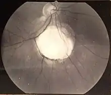 تكون في الجزء الخلفي من العين، تشخيصها عادة يكون في منطقة العصب البصري أو بقعة الشبكية، تتشوه العين بحيث يكون طول العين مرتبطا مع قصر النظر. يتم التشخيص عن طريق تنظير العين، الذي يظهر منطقة من الحفر الشبكي في منطقة العنبة.