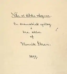 ![]() الصفحة الأولى من مخطوطة المسرحية بقلم إبسن (1899) | |