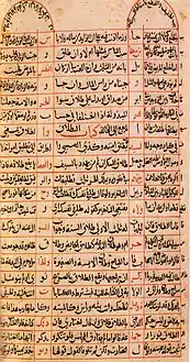 فإذا قرئ من اليمين لليسار؛ فهو علم الفقه، وإذا قرئ عموديا؛ أعطى قراءة نوع آخر من العلوم، وعدد الأعمدة في الكتاب أربعة، كل واحد منها يأخذ كلمات أوحروف مقطعة (من نفس محتوى الكتاب الذي يقرأ فقها) تتجه بالقرآءة عموديا من أعلى للأسفل، ويتكون من قراءتها بهذة الطريقة محتوى مختلفا، فالأعمدة تأخذ محتوياتها من تقاطعات الكتاب.