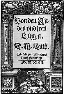 عن اليهود وأكاذيبهم (بالألمانية: Von den Jüden und iren Lügen) هي رسالة (بحجم كُتيّب)[1] معادية لليهود ألفها زعيم الإصلاح البروتستانتي الألماني مارتن لوثر عام 1543 قبل ثلاثة سنوات من وفاته، يصف فيها اليهود بأقذع الألفاظ ويدعو لاضطهادهم وملاحقتهم.