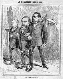 وفي الوقت نفسه بدأ الحزب الراديكالي في حرصه على الإطاحة بالحكومة بتمديد "الائتلاف الوطني" الذي شكله مع الجمهوريين بانتخابات البلدية في ديسمبر 1871 بإضافة طرف آخر مناهض للنظام وهو الكارليين بوجود هدف مشترك للأطراف الثلاثة:"التغلب على ماأثمرته الحكومة من فجور وأكاذيب" لأن "الحرية وشرف الوطن ... قبل كل شيء". ثم انضم إليهم لاحقا حزب الوسط. وخلال الحملة تم استخدام الخطاب الوطني بأن "إسبانيا حرة ومستقلة" في إشارة إلى الأصل الإيطالي للملك أو الحجة التي يستخدمها الجمهوري إيميليو كاستيلار لإقناع رفاق حزبه بدعم "الائتلاف الوطني" مؤكدا أنه شكله "الإسبان للدفاع عن الحكومة الإسبانية" وفي البرنامج الانتخابي للحزب الجمهوري في 29 مارس كان شعاره "إسبانيا للاسبان". تعهدت أحزاب "التحالف الوطني" لتقديم مرشح واحد فقط لكل منطقة -الحزب الذي حصل على نتائج أفضل في الانتخابات السابقة- وأن الصوت يكون لهم جميعا[42].