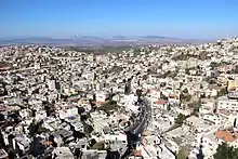 جانبٌ من حارةِ الإغباريَّة في مدينةِ أُمِّ الفحم كما تبدو من مئذنة مسجد أبو عُبيدة.