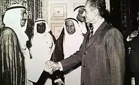![]() عيسى عبدالله بهمن يصافح شاه ايران محمد رضا بهلوي | |