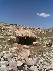 هي عبارة عن اكوام من الصخور الصغيرة المكدسة فوق بعضها البعض وتحتها غرف مبنبية بالحجارة وبها رفاة انسانية.