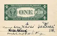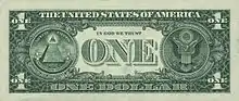 عين العناية الإلهية الأكثر شهرة هي التي توجد على ظهر ورقة 1 دولار أمريكي. الشكل الحالي لها، تم وضعه في سنة 1935 ووقع عليها الرئيس فرانكلين روزفلت، والذي طلب أنذاك عدة تعديلات. إلى جانب توقيعه، روزفلت الذي كان ماسوني، طلب عكس الختم العظيم الذي يوجد على اليسار، إلى جهة اليمين وفي مكان الهرم وعين العناية الإلهية. مع إضافة عبارة «الختم العظيم» (The Great Seal) تحت الهرم والعين، وكذلك عبارة «للولايات المتحدة» (of the United States) تحت رسمة عقاب الرخماء في ظهر الورقة. وزير الزراعة الأمريكي هنري والاس ووزير الخزانة الأمريكي هنري مورغنثاو، الذين كانا أيضا ماسونيين، قدما تعديلات على ورقة ال1 دولار سنة 1935.
