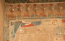 في طقوس معبد أخرى ، لعب الفرعون لعبة احتفالية تكريما لآلهة العين حتحور أو سخمت أو تفنوت ، حيث قام بضرب كرة ترمز إلى عين أبوفيس بهراوة مصنوعة من نوع من الخشب قيل إنه نبت من عين رع. تمثل الطقوس ، في شكل مرح ، معركة عين رأس مع أكبر أعداء لها. [64]