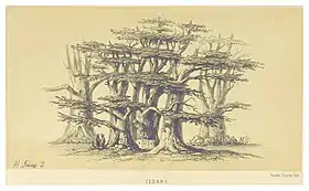 ![]() Cedars, in the hills of Ain Aata (2 June 1860)[1] Cedars, in the hills of Ain Aata (2 June 1860)[1] | |