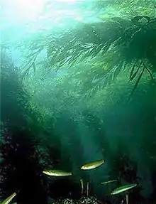 - Kelp forests provide habitat for a variety of invertebrates, fish, marine mammals, and birdsNOAA. Updated 11 January 2013. Retrieved 15 January 2014. نسخة محفوظة 09 سبتمبر 2017 على موقع واي باك مشين.