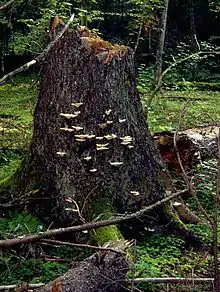 تتكون التضاريس المميزة لكثير من الغابات البدائية من حفر وتلال. وتنتج التلال عن تدهور الأشجار المتساقطة، والحفر ( رميات الأشجار ) الناتجة عن الجذور التي انسحبت من الأرض عندما تسقط الأشجار بسبب ظروف طبيعية ومناخية، بما في ذلك دفعها للحيوانات إلى الخروج من موائلها.غالبا ما تكوّن الرطوبة والأوراق المتساقطة، طبقة قادرة على رعاية أنواع معينة من الكائنات الحية. وتوفر التلال مكانًا خالٍ من غمر الأوراق وتشبعها، حيث تزدهر أنواع الكائنات الأخرى.
