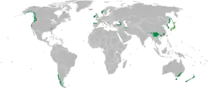 يوجد البعض الآخر أيضًا في المناطق ذات المناخ شبه الاستوائي الرطب مثل: غابات كنيسنا وجبال الأماتول الساحلية في جنوب أفريقيا، وغابات كولخيس المطيرة في منطقة البحر الأسود (الركن الجنوبي الشرقي من بلغاريا وتركيا وجورجيا)، وغابات بحر قزوين المطيرة المعتدلة في إيران وأذربيجان، والغابات المطيرة الجبلية المعتدلة على طول ساحل المحيط الهادئ في شرق تايوان، والساحل الغربي لشبه الجزيرة الكورية على طول سلسلة جبال بايكدودايغان والمنطقة المحيطة بجبل جيريسان وعلى امتداد الخط الساحلي الجنوبي لشبه الجزيرة، وغابات تايهيو جنوب غرب اليابان، والمنطقة الساحلية في نيوساوث ويلز والجزيرة الشمالية في نيوزيلاندا.