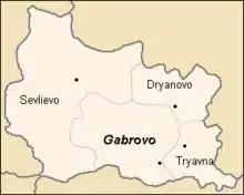 غابروفو هي مدينة تقع في وسط بلغاريا ويحيط بها كل من : لوفيتش، فيليكو ترنوفو. ويبلغ عدد سكان المدينة 137461 نسمة، وتبلغ مساحة غابروفو 2023 كم مربع.