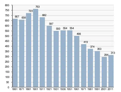 في سنة 1861 بلغ عدد السكان 667 نسمة، وتطور العدد ليصل في سنة 2011 لـ 313 نسمة.