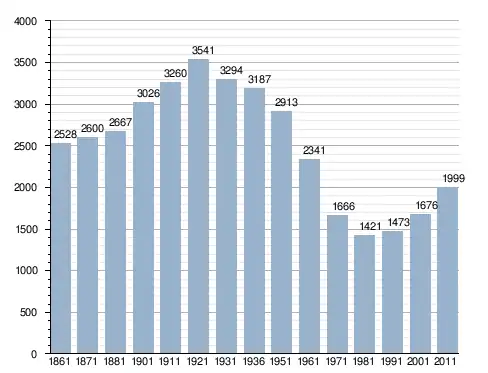 في سنة 1861 بلغ عدد السكان 2٬528 نسمة، وتطور العدد ليصل في سنة 2011 لـ 1٬999 نسمة.