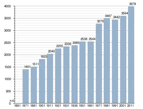 في سنة 1871 بلغ عدد السكان 1٬401 نسمة، وتطور العدد ليصل في سنة 2011 لـ 3٬978 نسمة.