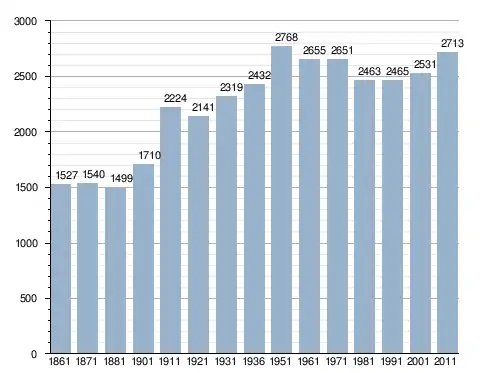 في سنة 1861 بلغ عدد السكان 1٬527 نسمة، وتطور العدد ليصل في سنة 2011 لـ 2٬713 نسمة.