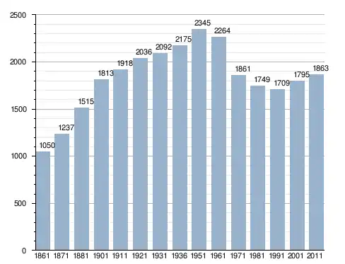 في سنة 1861 بلغ عدد السكان 1٬050 نسمة، وتطور العدد ليصل في سنة 2011 لـ 1٬863 نسمة.