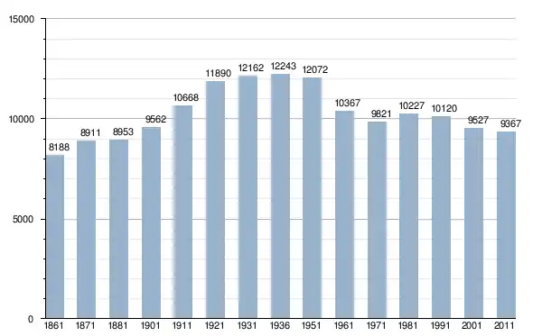 في سنة 1861 بلغ عدد السكان 8٬188 نسمة، وتطور العدد ليصل في سنة 2011 لـ 9٬367 نسمة.