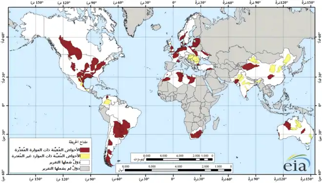حفر أول بئر في القارة ألاوروبية لاستخراجه في بولندا عام 2010.[بحاجة لمصدر] ويشكل اليوم 2014 أحد الدوافع لاقتصاد الولايات المتحدة والإنتاج هناك في ازدياد رغم الفائض المحلي الحالي