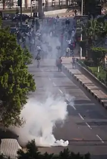 - وضع السي إس في قنابل حرارية تطلق غازات ساخنة.[5]
