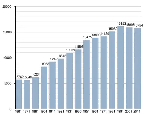 في سنة 1861 بلغ عدد السكان 5٬762 نسمة، وتطور العدد ليصل في سنة 2011 لـ 15٬754 نسمة.